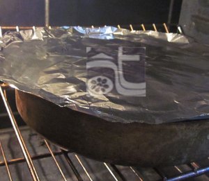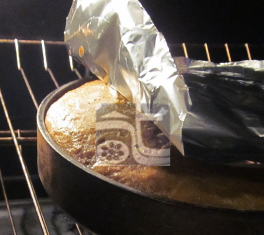 Để khuôn gang trong lò 350 độ F cho thật nóng, thật nhanh tráng khuôn bằng dầu ăn – rây hỗn hợp vào khuôn – đậy khuôn bằng giấy bạc – 30 phút sau bánh phồng gỡ giấy bạc ra – nhớ xoa dầu trên giấy bạc, mặt tiếp xúc với bánh.