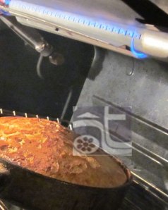 Mở lửa trên (broil) để mặt bánh vàng đều lúc này phải ngồi canh – đừng bỏ đi mà hư bánh đó – chỉ cân 3 đến 5 phút.