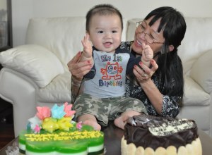 Khiêm của ngoại, chú cọp con, mới đó đã sinh nhật thứ hai rồi, sinh nhật thứ nhất hai bà cháu cùng cắt bánh, sinh nhật năm nay hai bà cháu không cần cắt bánh, chỉ cùng ăn thôi, đi lễ giỗ ông bà cố xong, Khiêm mệt rồi chỉ muốn ăn thôi mà.