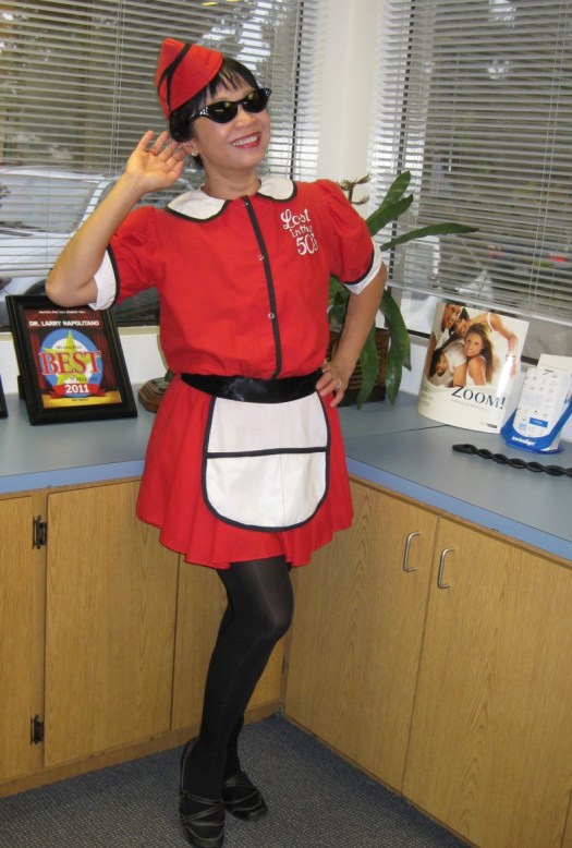 tuy nực nội nhưng mà nhìn cô tươi rói hà. con thích nụ cười duyên của cô quá xá.